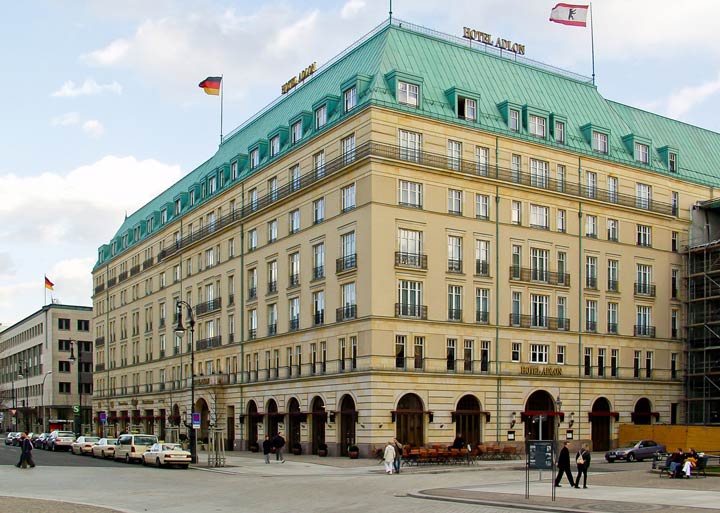 Das alte Adlon, bei seiner Gründung das luxuriöseste Hotel der Welt, überstand den Zweiten Weltkrieg, brannte aber in der Nacht vom 2. auf den 3. Mai 1945 ab, womöglich als Folge einer achtlos weggeworfenen Zigarette. Das neue Adlon, 1997 an gleicher Stelle errichtet, erlaubt sich zwar im Interieur einige Reminiszenzen an den Vorgänger (Brunnen in der Halle, Freskierung der Wände), ist aber doch ein anderes Haus.